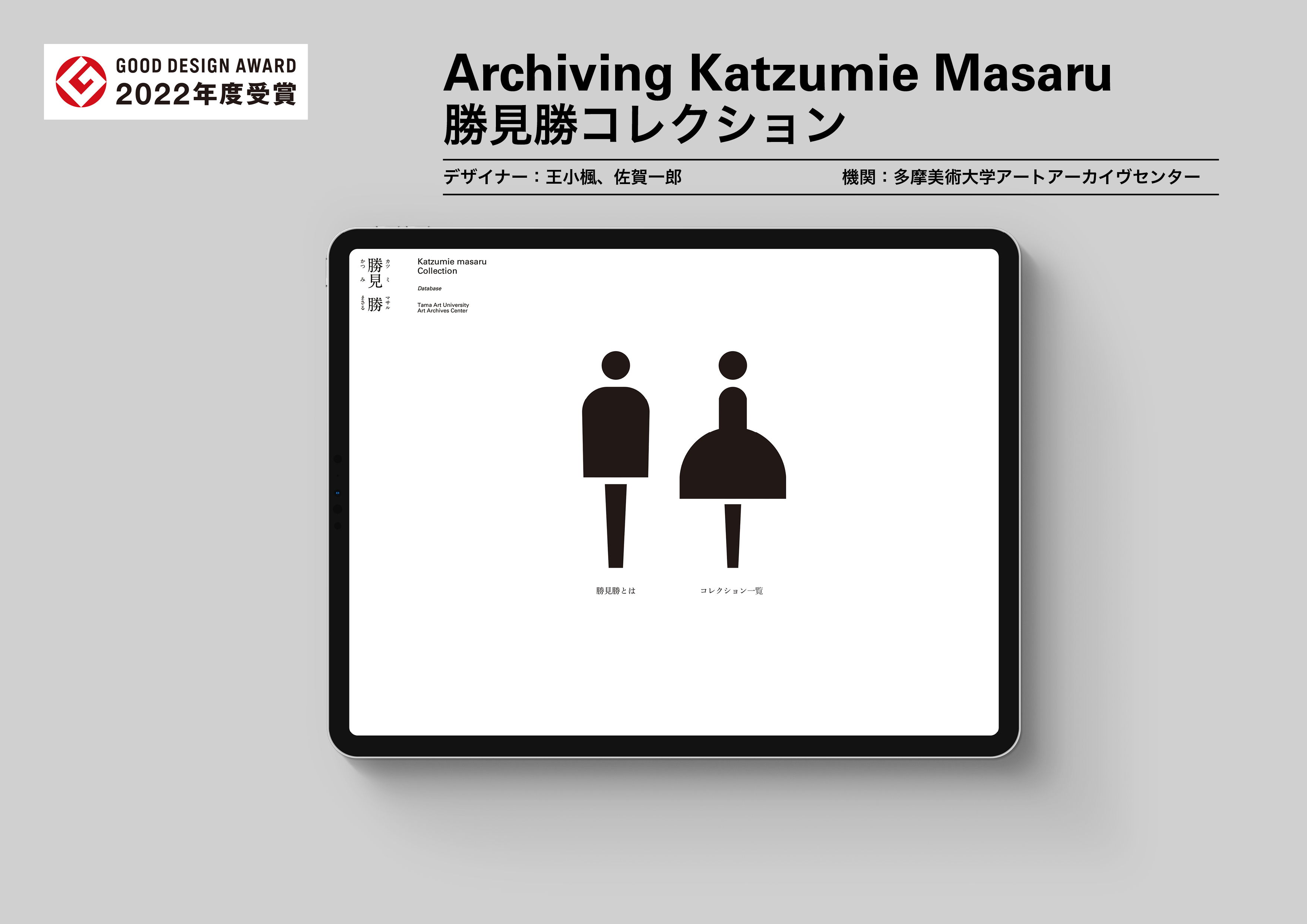 此數字檔案庫是為多摩美術大学藝術檔案中心所藏的勝見勝藏品而設計。此數字檔案庫是為多摩美術大学藝術檔案中心所藏的勝見勝藏品而設計。勝見勝藏品數字檔案庫設計的創新性體現在它同時包括“教育”和“研究”兩種功能。使用者除了可以直接在勝見勝藏品檔案庫中通過分類查找或索引的方法搜索到藏品檔案資料外,還可以通過了解勝見勝的個人生涯,思想和設計哲學等內容介入藏品檔案庫的瀏劉覽,這通常是數字檔案庫設計所並不具備的能力。
