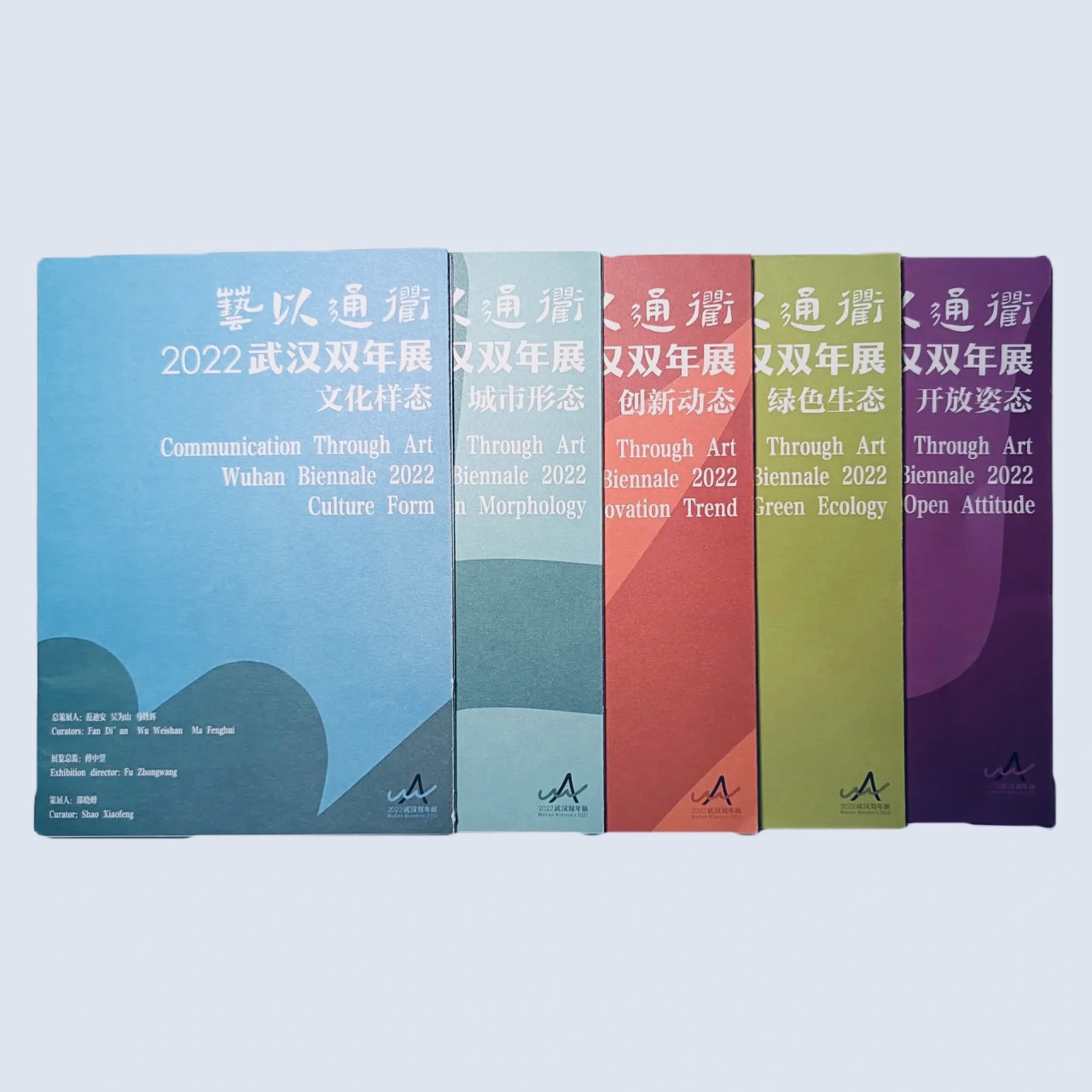 The visual design adheres to the aesthetic temperament of Chinese freehand landscape, and continues the main logo image of the Biennale "Looking for bosom friends with high mountains and flowing water" and "Freehand brushwork with blue mountains and blue waters". The "w" and "h" of Wuhan (Wu Han) are combined into "art", the fusion of art rivers, the harmony of ecological beauty and artistic beauty. The series of colors originate from the images of the five elements and express different themes. High mountains and flowing waters find friends, and Wuhan prospers when two rivers meet. The green mountains and green waters are picturesque, and the traditional and contemporary blend together. Logos, posters, guidebooks and other visual designs reflect the communication needs and style characteristics of the Biennale, conveying a unique and charming image of the Art Biennale.