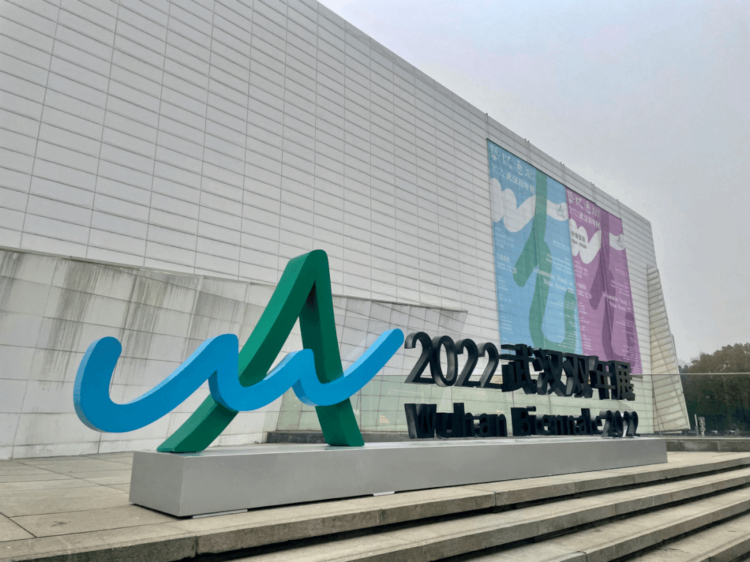 視覺設計秉承中國寫意山水美學氣質,延續雙年展“高山流水覓知音”“山青水藍大寫意”的主標識形象。武漢(Wu Han)的“w”和“h”組合成“藝”,藝術江河的融合彙聚,生態美與藝術美的和諧。系列色彩源於五行意象,表達不同主題。高山流水覓知音,兩江交匯武漢興。青山綠水如畫美,傳統當代碰交融。標誌、海報、導覽手冊等視覺設計體現雙年展的傳播需求和風格特點,傳達獨特且富魅力的藝術雙年展的形象。